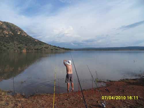 This dam is very close to Rustenburg. Grassy banks make is a bit difficult to fish. Maybe a good spot for day visitors but not for a family outing. Catching barbel will be the best bet although there is rumours of some nice carp between 10-16 kg. |