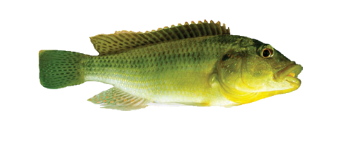 | Description | The Canary Kurper is olive brown and green in colour; sexually mature Canary males have a brightly coloured chest, normally bright yellow. They have a distinctive marking of orange or red egg spots in the anal fin. They have a relatively slender body, big head, round tail and don’t have spiky fins like the tilapia species. Juvenile and female Canary Kurper are dull and greenish grey in colour and a lot smaller than the males. When looking at the male Canary in the water, the yellow chest shining brightly is very noticable. This is a real trigger for bass. |