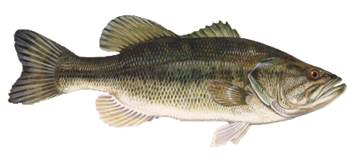 | Description | The largemouth is an olive green fish, colour get darker green to olive green towards the back, marked by a series of dark, sometimes black, blotches forming a jagged horizontal stripe along each flank. The upper jaw of a largemouth bass extends beyond the rear margin of the orbit. In comparison to age, a female bass is larger than a male. The largemouth is the largest of the black basses. Studies of prey utilization by largemouths show that in weedy waters, bass grow more slowly due to difficulty in acquiring prey. Less weed cover allows bass to more easily find and catch prey, but this consists of more open-water baitfish. Paradoxically, with little or no cover, bass can devastate the prey population and starve or be stunted. Largemouth are keenly sought after by anglers and are noted for the excitement of their fight. The fish will often become airborne in their effort to throw the hook, but many say that their cousin species, the smallmouth bass, can beat them pound for pound |